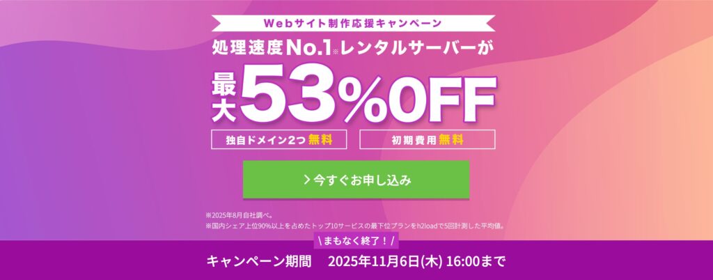では各レンタルサーバーの最新キャンペーン情報をご紹介します。