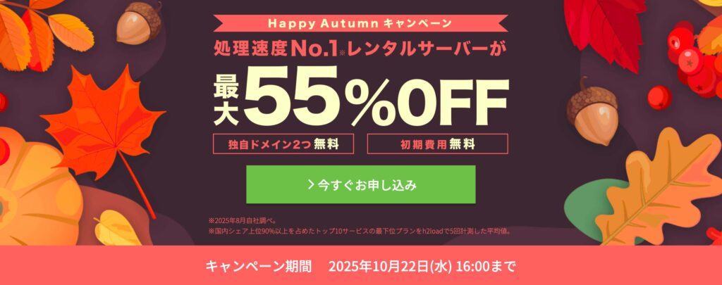 2025年10月現在、ConoHa WINGは「Happy Autumnキャンペーン」を実施中しています。